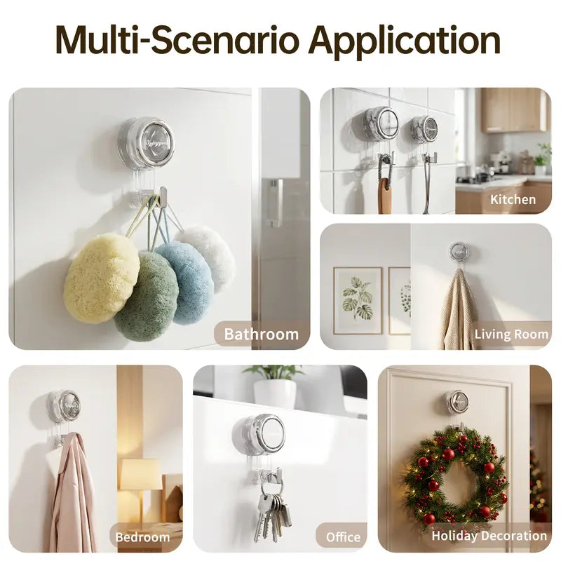Tired of hooks that peel off the moment you hang something? Our heavy-duty suction hooks support up to 11 lbs (5kg) with a powerful industrial-grade vacuum seal. Waterproof and reusable, these hooks are designed to thrive in humid environments like bathrooms and kitchens, providing a "rock-solid" hold that you can truly trust.
